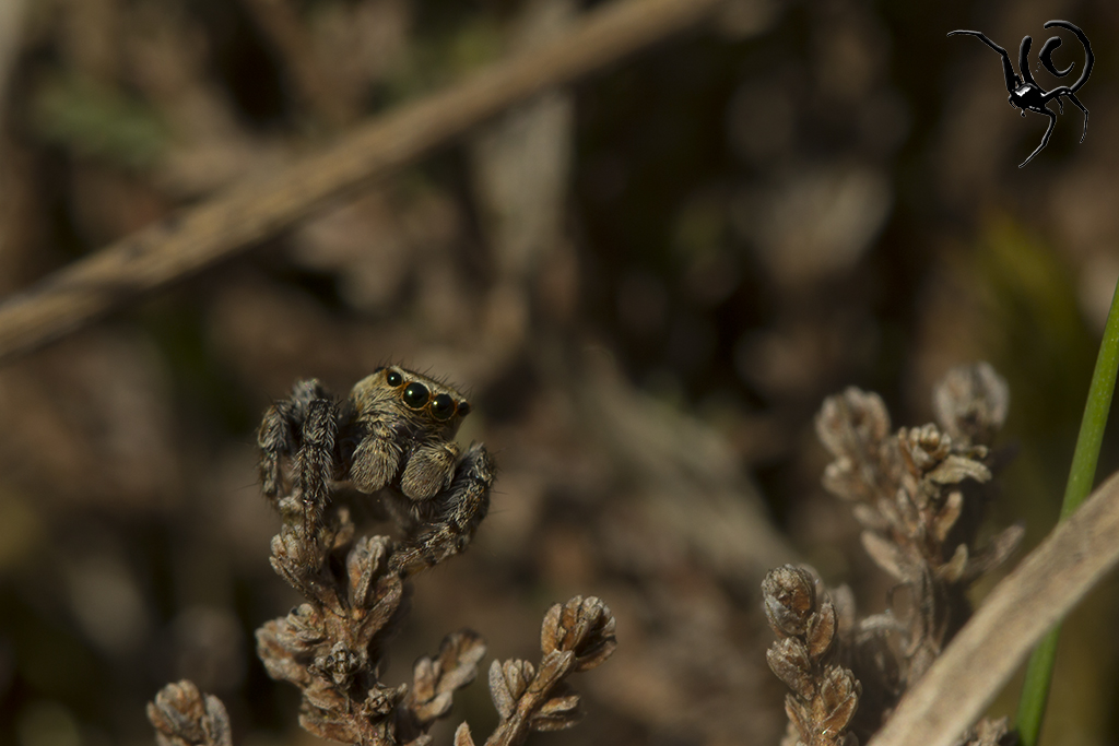Een andere soort kwam ik tegen in de struikheide zelf, de bonte grasspringspin – Evarcha arcuata